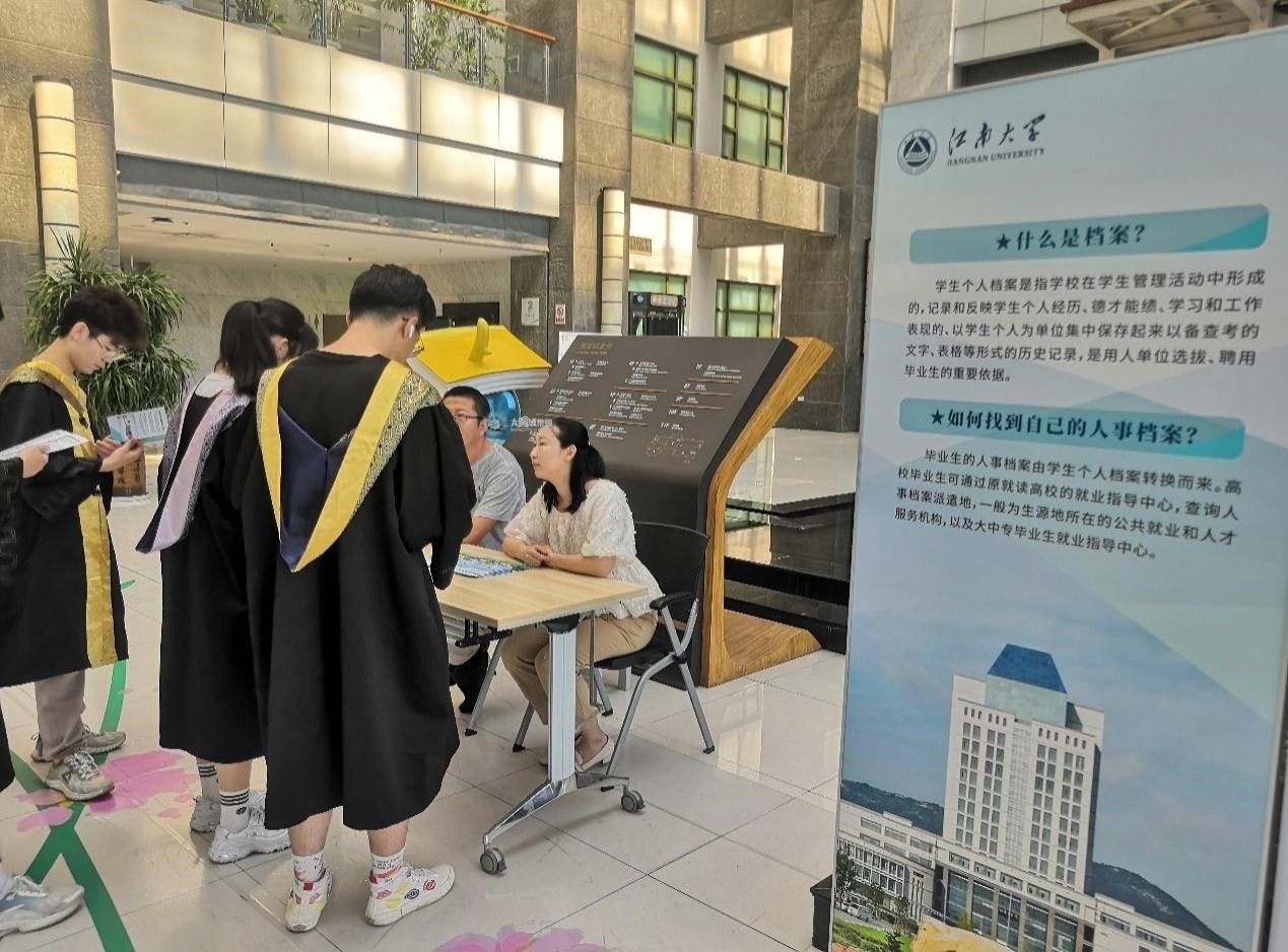 一场档案咨询活动。6月9日,档案馆在公益图书馆一楼设置咨询台、摆放宣传展板、电子屏幕展示等,档案馆工作人员热情解答了师生提出的问题,详细介绍了毕业生档案管理、转递、查询等方面的事项,发放《毕业季档案的那些事》等资料,传播档案知识、宣传档案价值,并收集师生对档案馆工作的意见建议。