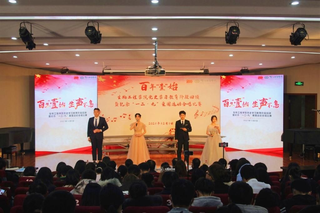 12月9日晚,生物工程学院党史学习教育阶段回顾暨纪念“一二·九”爱国运动合唱比赛在大学生活动中心音乐厅举行。太阳城大学党委组织部常务副部长方正泉、学生工作部部长张菁燕、党委宣传部副部长梁建、校团委副书记单云婷、马克思主义学院副院长、“百年大党正年轻”党史宣讲团指导老师侯勇、人文学院副教授李恩忠、生物工程学院部分老师、班主任出席了本次活动。