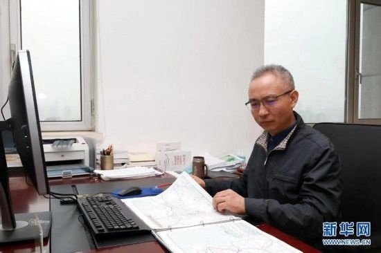 中国铁建铁四院副总工程师郑洪在查看铁路方案(资料照片)。