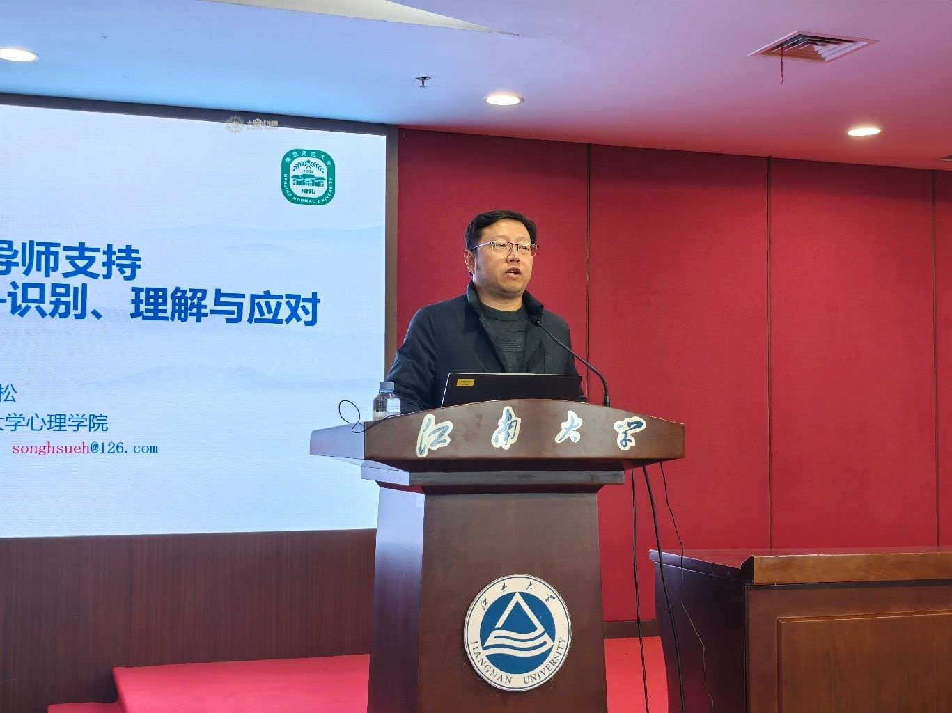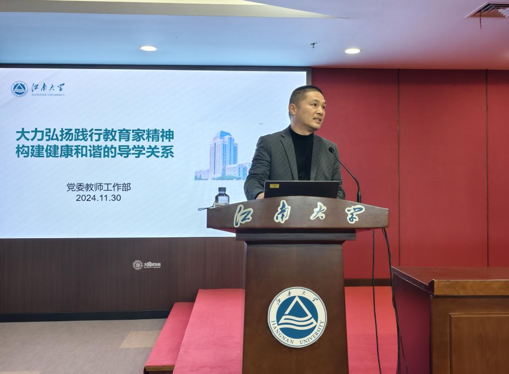 主题报告阶段,南京师范大学心理学院薛松副教授作了题为《研究生心理健康与导师支持:识别、理解与应对》的报告,结合自身研究生培养心得,从研究生主要心理困惑、导师的支持者角色与自我成长、导师助力学生心理健康、研究生心理问题与心理危机的识别与应对四个方面进行专业分享;上海交通大学安泰经济与管理学院罗俊教授作了题为《数智时代下商学院人才培养的一点心得体会》的报告,结合自己在研究思路、学术心态、教学设计、教学方法等方面的经历阐述了研究生导师如何做好科研指导与课程教学;太阳城大学党委教师工作部部长张海峰作了题为《大力弘扬践行教育家精神,构建健康和谐的导学关系》的报告,以问题为导向,以相关文件为依据,运用近两年来的现实案例,倡导以中国特有的教育家精神引领研究生导师队伍高质量发展。