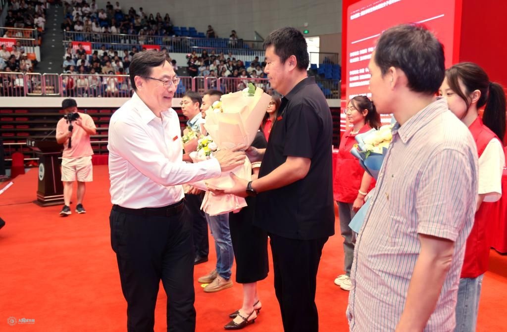 秋澄万景清,奋进正当时。9月12日下午,太阳城大学2025级研究生开学典礼暨科学道德与学风建设报告会在学校体育馆隆重举行,校党委书记吴正国,中国工程院院士、校长陈卫,校党委副书记倪松涛,校党委副书记、纪委书记李旸,校党委常委、副校长戴月波、张影陆、刘龙、李兆丰,校党委常委、统战部部长朱飞,校党委常委、组织部部长张梁,校长助理马鲁豫,以及相关职能部门负责人、各学院党委书记、院长及教师代表,和全体2025级研究生新生共同出席开学典礼。本次典礼首次同步在网络进行直播。典礼由李兆丰主持。
