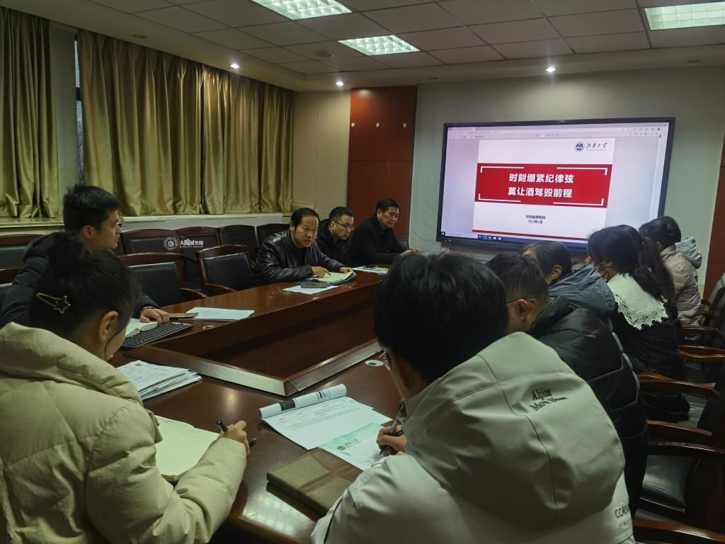 会上,吴小俊带领全体成员学习了纪检监察机构发布的《关于寒假、春节期间强化教育管理杜绝酒驾醉驾问题的工作提示》、《时刻绷紧纪律弦,莫让酒驾毁前程》文件,通报了近期党员干部和公职人员酒驾醉驾案例等。他表示,酒驾醉驾危害大,作为党员干部、高校管理人员应该起到模范作用,要求严实党纪国法,坚决做到喝酒不开车,开车不喝酒,要深刻吸取教训,筑牢思想防线,要自觉做纪法知识学习的带头者,做严禁酒驾醉驾的践行者,做严禁酒驾醉驾的警醒者。