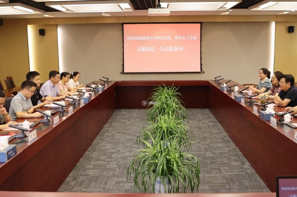 吴刚对学校的热情接待表示感谢。他从学生与教职工概况、学科建设以及学生管理等方面对扬州大学进行了简要介绍,并重点分享了以党建思政为抓手的研究生教育管理方法。
