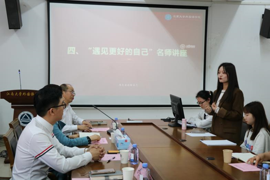 4月2日15:30,外国语学院于会议室A349举办上海少威电子科技有限公司捐赠仪式暨第二十七期“遇见更好的自己”名师讲座。上海少威电子科技有限公司总经理华锦洲、外国语学院党委书记李荣华、院长方文开、党委副书记刘伯贤、英语系主任杨勇、教授袁雪生、副教授李文、社会资源与校友联络部主任程方以及学生代表参加本次活动。本次活动由刘伯贤主持。