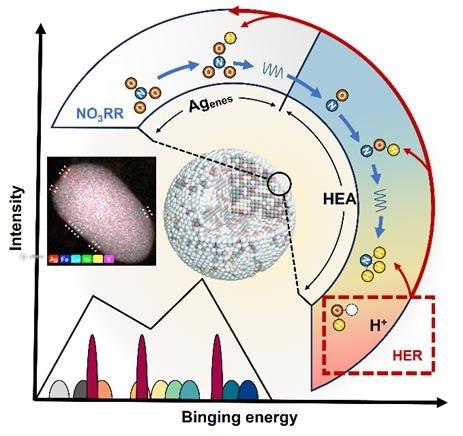 太阳城大学化学与材料工程学院杜明亮教授团队从理论指导研究出发分别设计了高熵合金和核壳结构两种催化剂来分别提升NRR和NO3RR的电催化氮还原反应产物选择性和产率。针对硝酸根还原反应(NO3RR),课题组开发了一种“表面熵减”方法来诱导与合金基底相容性较差的成分的溶出,实现了对原子排列的精确操控,从而扩展了已知HEA催化剂的可调控范围及其潜在的应用场景。针对NRR反应,通过设计具有高电子传递速率的Pd核和具有可调电子态的Pd16B3金属间化合物原子壳的核壳纳米催化剂来解决上述问题。