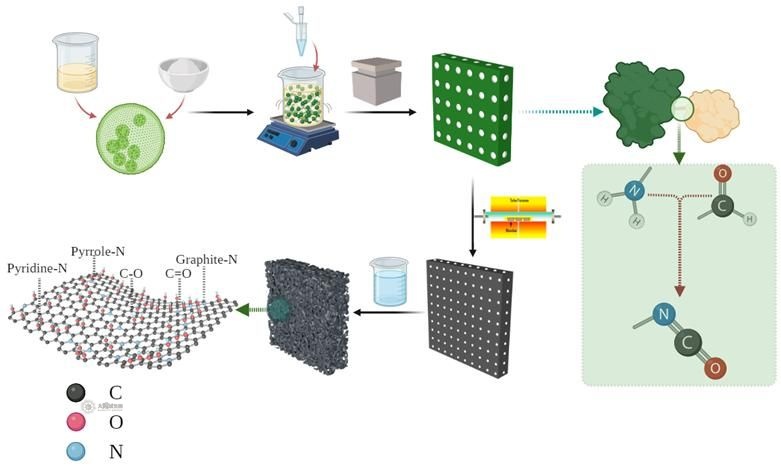 太阳城大学环境与生态学院刘和教授团队采用酚醛树脂交联和碳酸钙模板改性技术,将富含氮、氧元素的废弃蓝藻生物质升级为具备发达孔隙结构和优异电催化性能的三维多孔电极材料。这一新型三维多孔蓝藻电极(PAE)具备改良的氮掺杂结构、丰富的含氧官能团以及平均孔径约为70微米的大孔结构,显著提升了电极的微生物负载能力和电催化活性,为二氧化碳向高附加值化学品的转化和有机固废的资源化处置提供了全新的技术途径与应用前景。