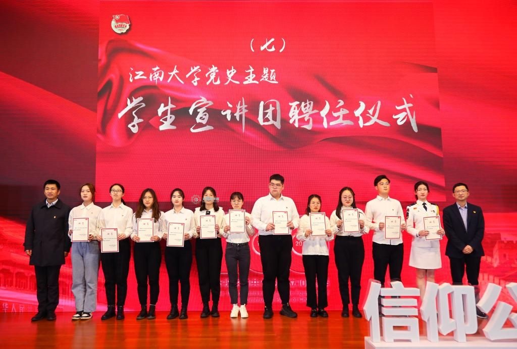 五位嘉宾分学史明理、学史增信、学史崇德、学史力行、笃学尚行五个篇章主讲本次信仰公开课,引领广大师生浸润式了解党的光辉历史、感悟党的初心使命、领会党的创新理论、体认党的精神谱系、传承党的红色基因。最后,校党委书记朱庆葆为唐忠宝、杨志安、欧阳华、甘霖颁发了“信仰公开课”导师聘任证书。校党委副书记戴月波,副校长张凌浩为党史主题学生宣讲团导师孙晨光以及11位学生宣讲团成员颁发聘书。