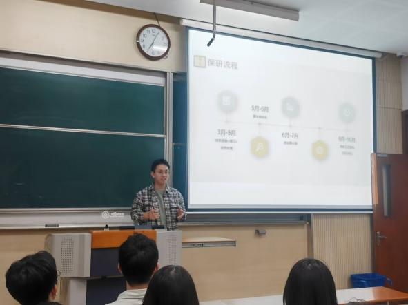 本次分享会邀请了光科21级的李炳涛、白洋、田高雯三位优秀学子,他们凭借卓越的表现成功分别保研至浙江大学、中国科学技术大学、北京理工大学。在交流会上,三位同学毫无保留地分享了自己的保研心得与成功经验。李炳涛以其丰富的夏令营经历为切入点,详细阐述了参加夏令营的全过程,并着重介绍了面试环节中的注意事项与应对策略。他的分享,让在场的同学们对夏令营有了更深入的了解,也激发了他们参与夏令营的热情。白洋则着重强调了保研所需满足的各类条件,如学科竞赛、科研项目、论文发表等。他结合自己的亲身经历,为同学们提供了宝贵的建议,鼓励他们积极参与各类活动,提升自己的综合素质。田高雯分享了保研前期准备工作的心得,以及在选学校、联系导师等方面的经验。她详细介绍了如何制定科学的备考计划,如何选择合适的学校和专业,以及在与导师沟通时的技巧与注意事项。她的分享,让同学们在保研的道路上少走了许多弯路。在互动环节,现场的学生们积极举手提问,就学习方法、专业选择、职业规划等方面的问题向学长学姐们请教。三位优秀学子耐心解答,用生动的例子和亲切的语言,为同学们提供了实用的建议和指导。现场气氛热烈而融洽,同学们纷纷表示受益匪浅。