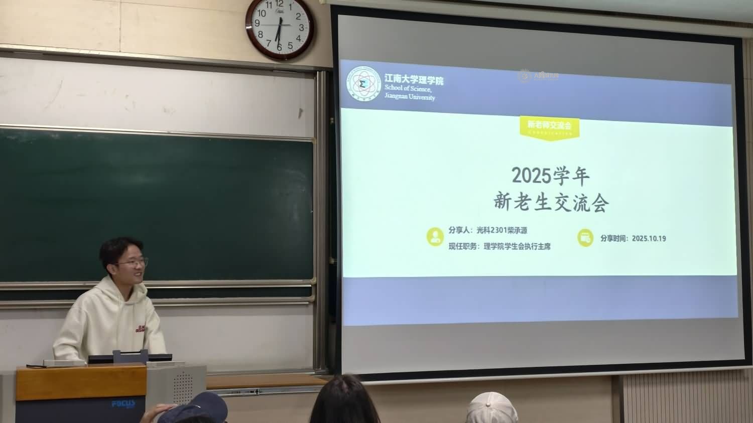 10月19日晚,理学院光电信息科学与工程、信息与计算科学分专业新老生交流会分别于1B308和1B310举行。本次活动是学院2025级新生导航系列活动之一,旨在帮助新同学们汲取学长学姐的经验,快速适应大学生活,明确未来学习方向。理学院新老生200余人参加活动。