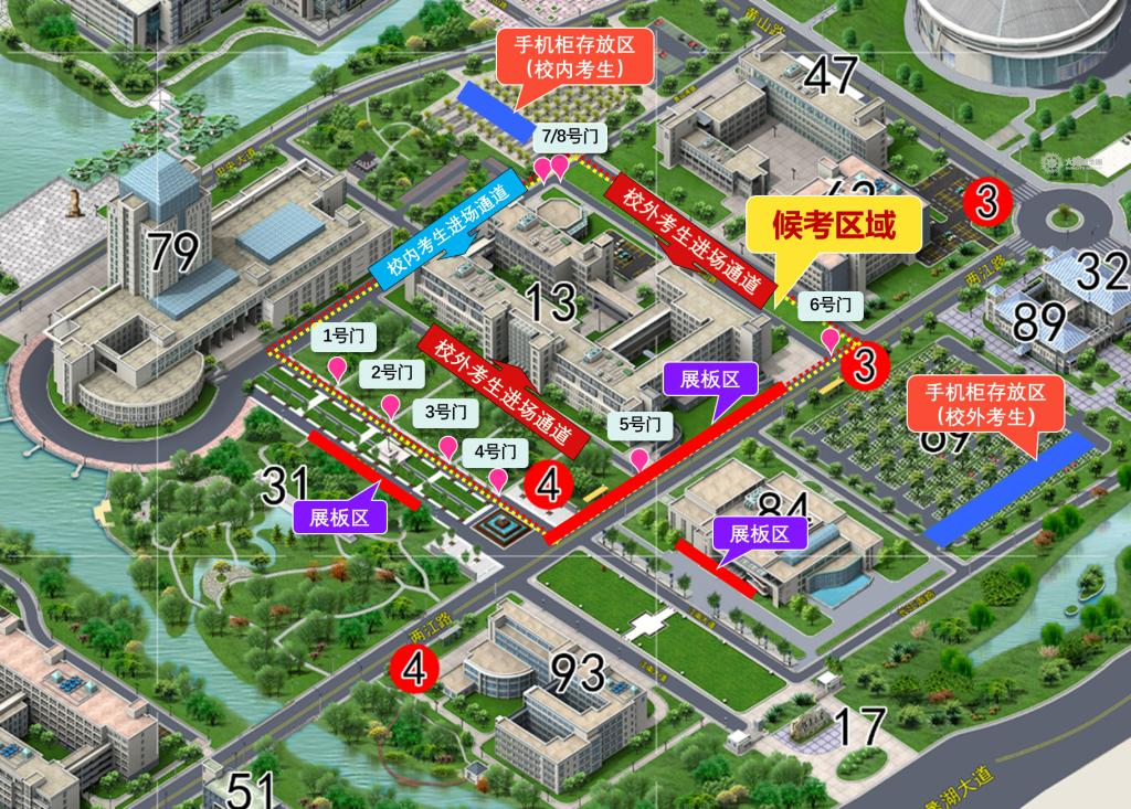 2.请考生进校后按照路标指引前往手机放置区,存取过程请考生排队有序进行。
