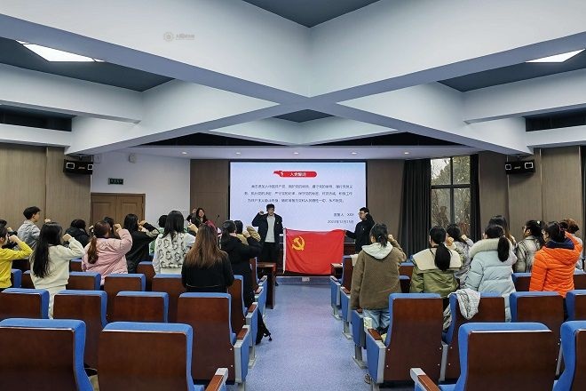 为认真学习贯彻习近平新时代中国特色社会主义思想,加强对青年学生党员以及新党员的思想教育,提高党性修养,牢记初心使命,外国语学院本科党支部、研究生党支部于近期开展“学习习近平文化思想,勇担外语人文化使命”主题党课暨入党宣誓仪式。本次党课由外国语学院分团委书记、本科党支部书记顾海星担任主讲人。
