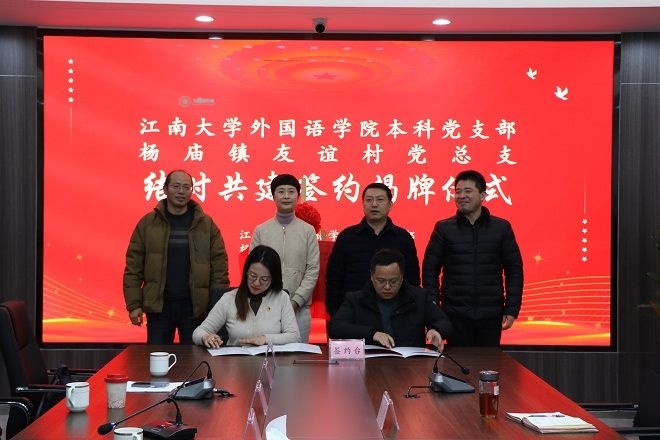 22日下午,外国语学院本科党支部与扬州市邗江区杨庙镇友谊村党总支结对共建签约揭牌仪式在杨庙镇人民政府举行。友谊村党总支负责人李源就友谊村党建引领、乡村振兴、经济增收等方面向大家详细介绍了本村情况。李源表示,通过乡村振兴战略的落地实施,友谊村走上了“一步一台阶”的发展之路,年经济收入稳步上升。他提出,外国语学院与友谊村的党建共建,不仅能够实现资源共享、优势互补,更为乡村振兴和青年人才培养搭建了一个良好的平台。