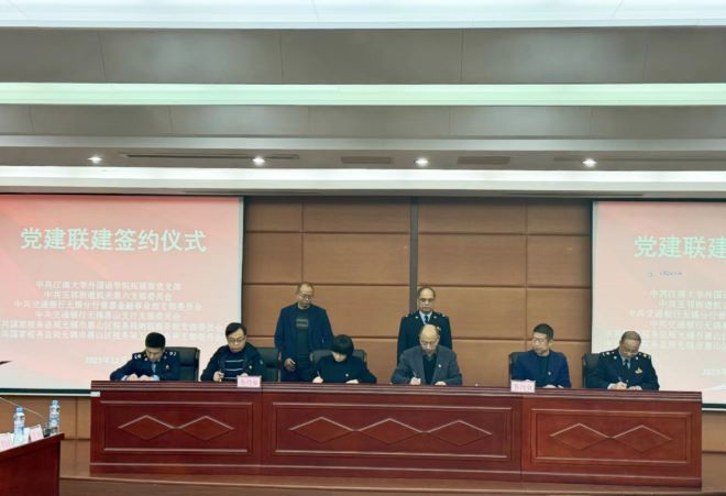 为充分发挥党建引领作用,推动党建与业务深度融合,进一步构建“资源共享、优势互补、互相促进、联建共赢”党建工作格局,12月15日下午,外国语学院党委副书记刘伯贤、拓展部党支部书记仵欣欣、支委委员姜辰娟、许敏一行四人代表外国语学院拓展部党支部来到无锡市惠山区玉祁税务所,与玉祁街道机关第六支部委员会、交通银行无锡分行普惠金融事业部支部委员会、交通银行无锡惠山支行支部委员会、惠山区税务局纳税服务股支部委员会、惠山区税务局玉祁税务所支部委员会举行党建联建签约活动。