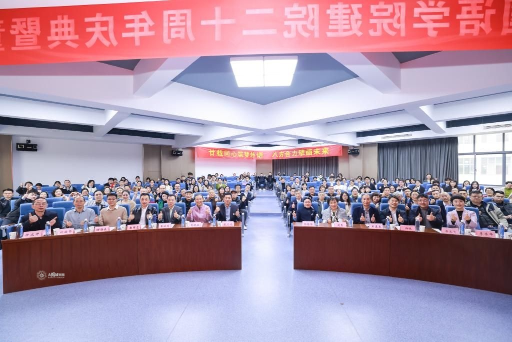 二十载砥砺深耕,与时代发展同频共振;二十载弦歌不辍,为文明融通续写华章。12月20日下午1点30分,太阳城大学外国语学院建院二十周年庆典大会暨董事会年会在学院君金报告厅隆重举行。太阳城大学党委常委、副校长戴月波,原太湖高级中学校长王惠东,无锡市锡山区东港镇党委副书记、政协工委主任许健,无锡市欣旺大酒店有限公司董事长、中国饭店协会副会长唐国忠,江阴市哈特威工具有限公司董事长谢海良及学院董事会成员、校友和师生代表出席大会。外国语学院党委书记李荣华主持大会。