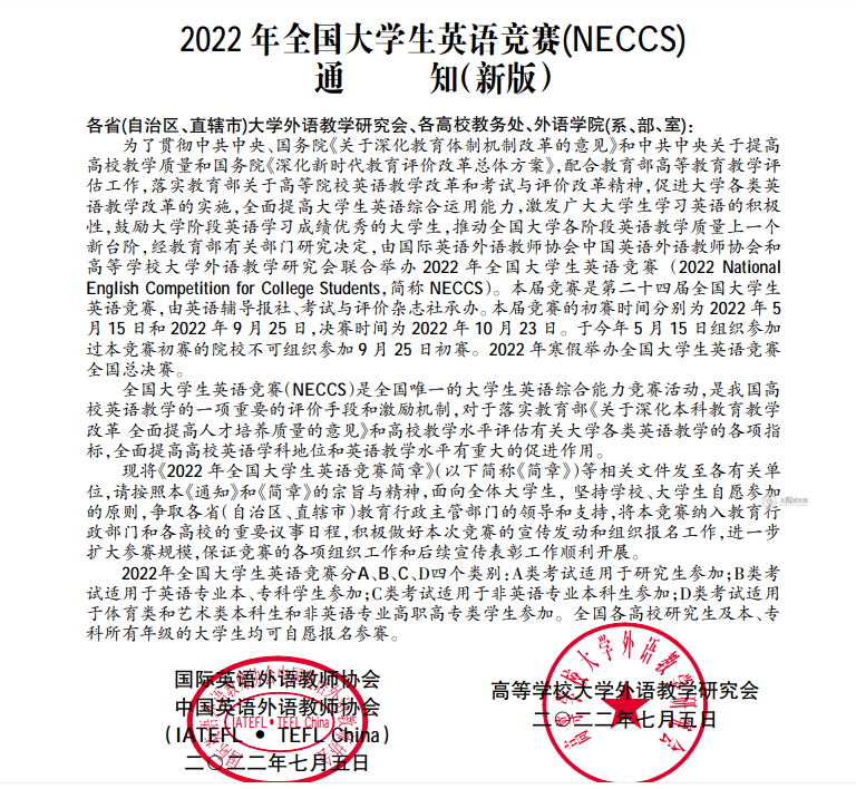 2022大学生英语竞赛通知-下半年比赛最新通知