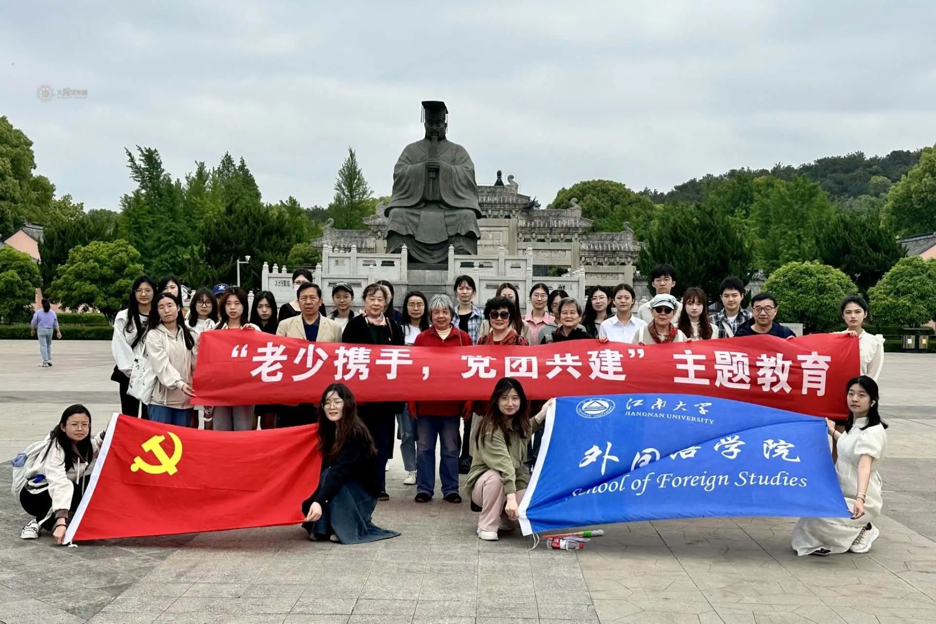党旗所指就是团旗所向。为鼓励新时代中国青年团结凝聚在党的周围,以昂扬向上的精神风貌在中国式现代化建设中挺膺担当,坚定青年党员和团员听党话、跟党走的决心,4月27日,机关离退休第三党支部、社桥离退休党支部的部分老党员与外国语学院英语本科生党支部党员、雷锋特称团支部、张闻天特称团支部团员,赴无锡泰伯陵以及鸿山遗址博物馆联合开展“老少携手,党团共建”主题实践活动。