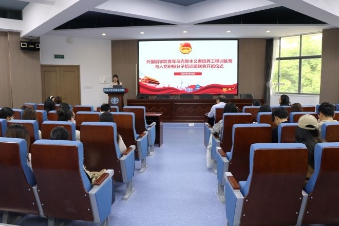 5月10日下午14:30,外国语学院2023年青年马克思主义者培养工程训练营与入党积极分子培训班联合开班仪式顺利举行。本次开班仪式邀请到外国语学院党委副书记、副院长刘伯贤、分团委书记陆芳、学院关工委委员郭锡华出席,青马训练营和入党积极分子培训班全体学员参加。