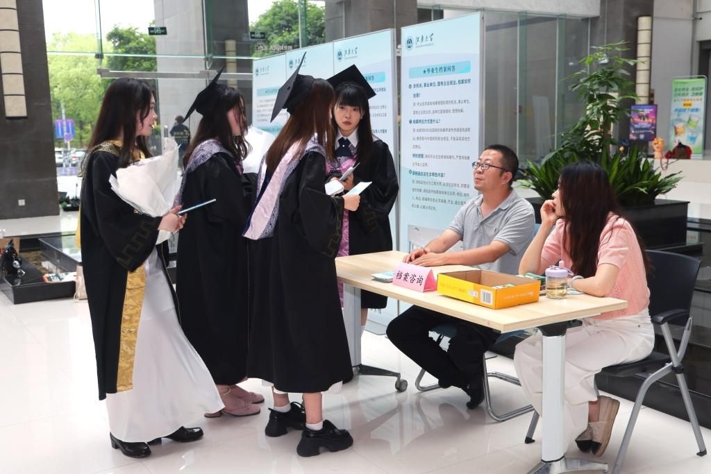 6月9日,在图书馆一楼,档案馆设立“毕业季档案咨询服务专区”,通过摆放宣传展板、播放电子海报、发放《毕业生档案服务指南》等形式,为师生提供政策解读“一站式”服务。工作人员现场解答档案转递流程、考研升学档案处理、海外留学存档等高频问题,并针对不同就业去向的毕业生提供个性化指导。活动期间,累计接待咨询120余人次,发放资料300余份,以暖心服务助力毕业生顺利开启人生新征程。