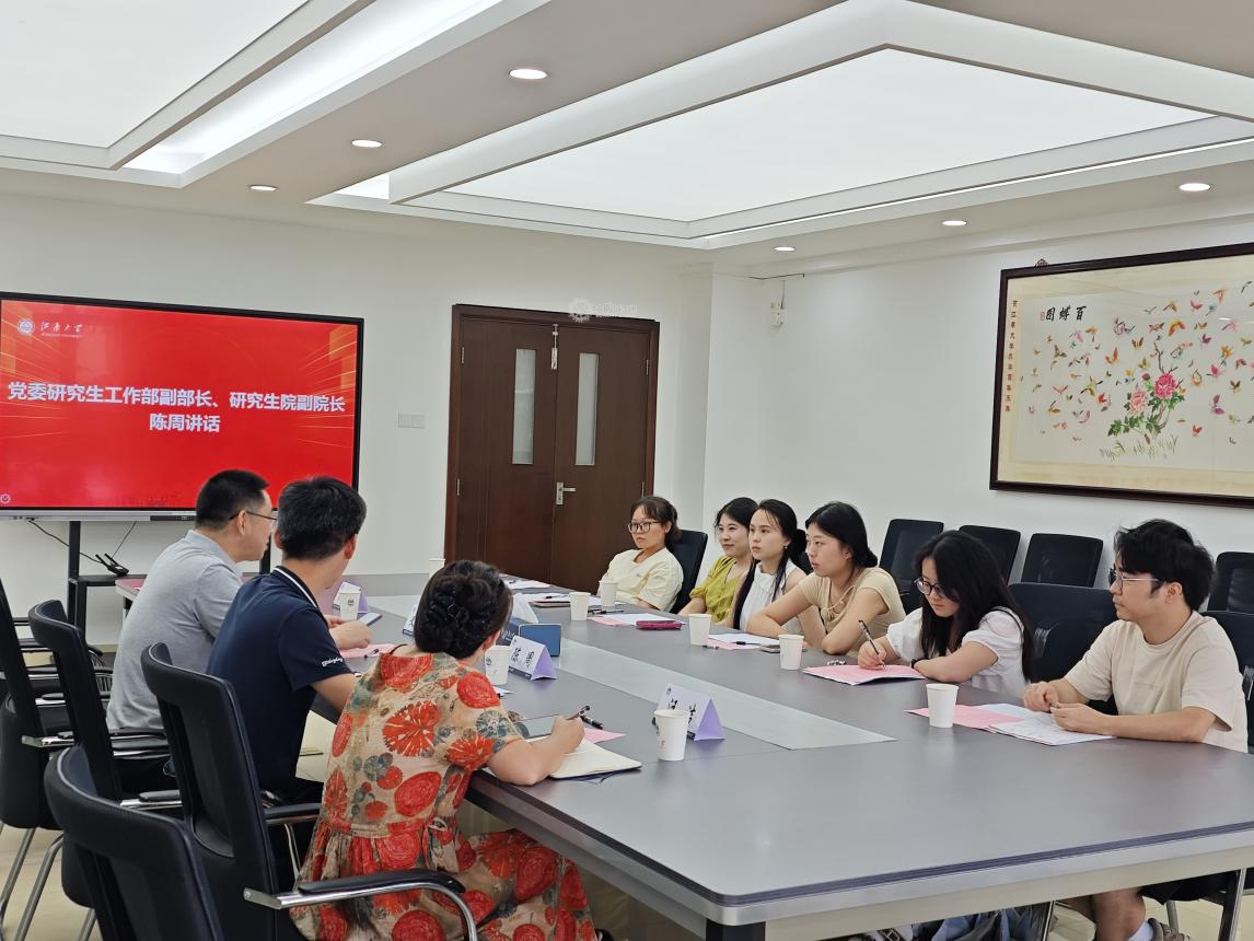 7月10日下午,党委研究生工作部、研究生院在行政楼B306成功举办太阳城大学博士生服务团从江瑶浴产业专项调研培训会。生命科学与健康工程学院教授史劲松,卓越工程师学院副院长孙子文,党委研究生工作部副部长、研究生院副院长陈周,党委研究生工作部正科级干部汪洁及博士生服务团成员出席培训会。会议由党委研究生工作部董莹主持。