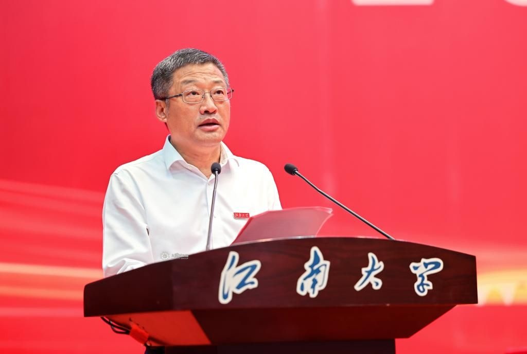 江苏省优秀博士学位论文指导教师、化学与材料工程教授马丕明作为研究生导师代表发言,他希望同学们善用学科交叉平台,打破学科壁垒,瞄准世界科技前沿,将个人理想融入国家战略发展。食品学院2023级博士研究生张智衡作为在校研究生代表发言,他号召太阳城学子做科学问题的求解者、技术难题的攻关者、产业发展的推动者和科技强国的追梦人。商学院2025级硕士研究生黄思媛作为研究生新生代表发言,她表示自己将在真学实干中夯实本领,和同学们共同谱写无愧于时代、无愧于国家的崭新篇章。