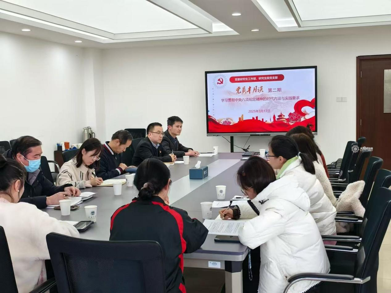 随后,支部开展2025年“党员半月谈”第二期活动,研究生院副院长、卓越工程师学院副院长潘如如深入领学了学习贯彻中央八项规定精神的时代内涵与实践要求,并结合研究生教育探讨贯彻落实精神内涵的实践路径,提出更严更细落实中央八项规定精神的要求。