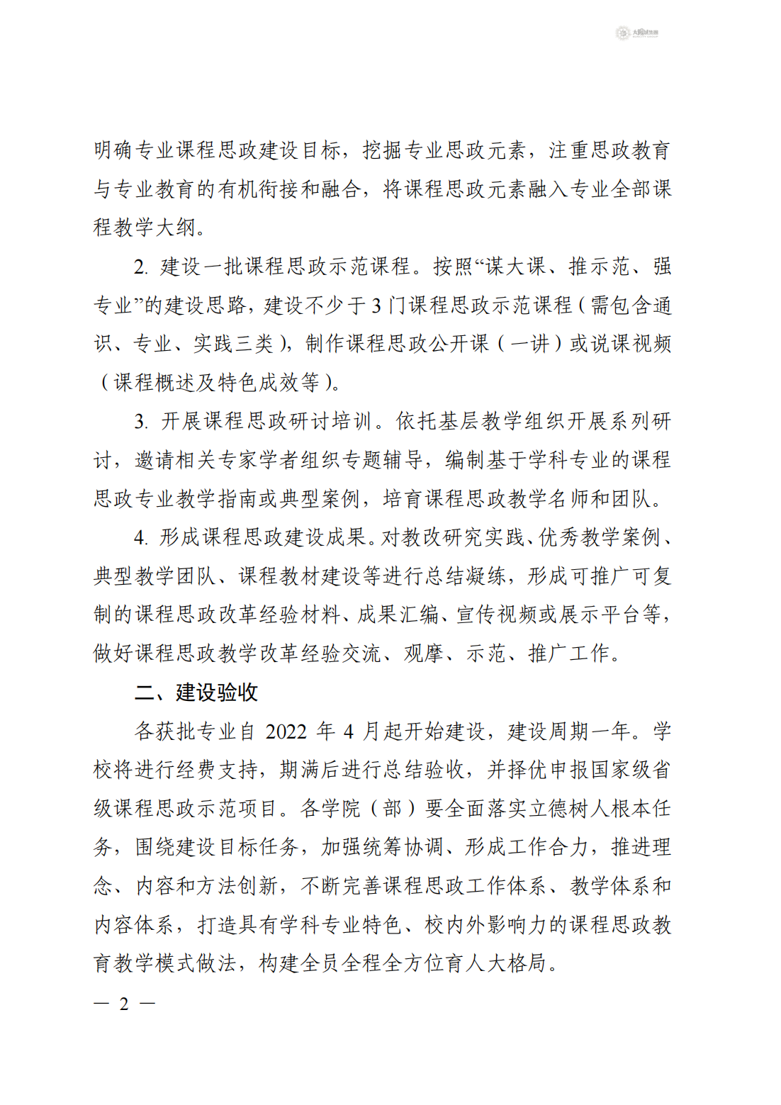 关于公布 2022 年太阳城大学课程思政示范专业建设点名单的通知