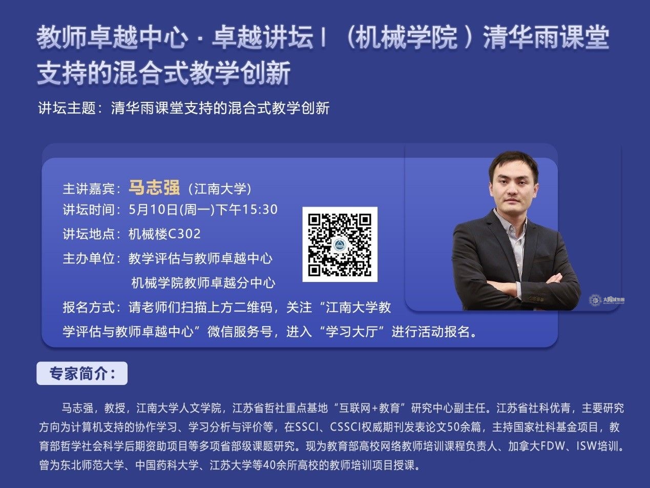 讲坛主题:清华雨课堂支持的混合式教学创新