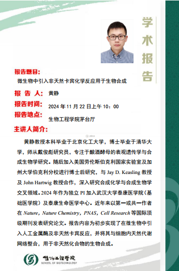 学术讲座:“微生物中引入非天然卡宾化学反应用于生物合成”主题讲座