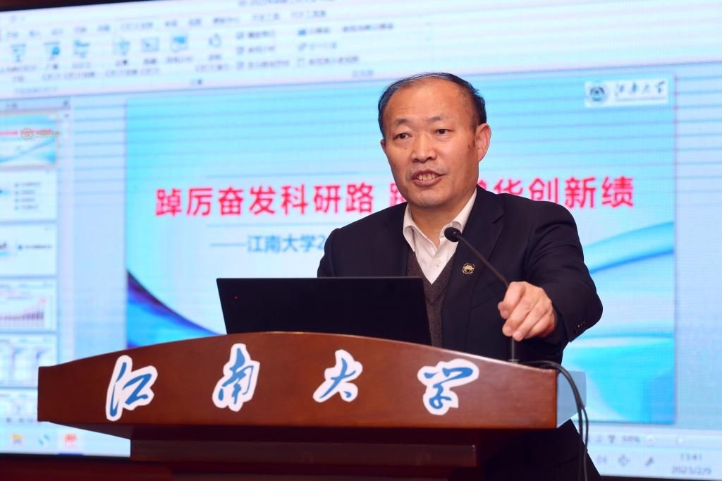 顾正彪以“踔厉奋发科研路,踵事增华创新绩”为题作了2022年度科研工作报告,总结回顾学校2022年科研工作取得的成绩,明确2023年科研工作的重点。报告指出,2022年,全年到账科研经费再创新高,突破11亿元,国家重点研发计划项目立项9项,国家自然科学基金立项174项,并取得首个国家社科基金艺术学重大项目,获批国家高级别生物安全实验室,首篇CNS正刊论文,首个亿元级专利转化项目签署落地等一系列新突破。报告还对2022年国家基金项目申请情况进行了分析与总结,并就2023年优化平台建设布局、加强国家级项目承接能力、推进国防军工科研、加强成果转化、推进市校共建科技合作等具体工作进行了安排部署。
