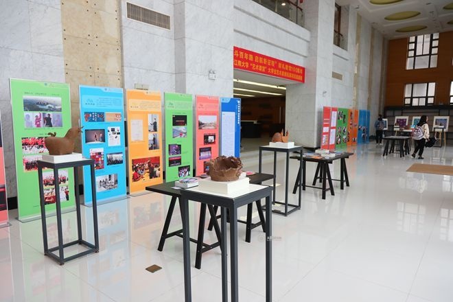 本次展览展出了2020年度“艺术课堂”项目中设计学院贺文忠授课的《中国古代陶瓷艺术鉴赏与陶艺实践》、谭莹授课的《扎染艺术设计与制作》、赵燕授课的《中国传统漫画赏析》等课程的部分优秀作品及其它各个项目中的精彩集锦。
