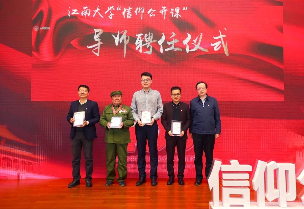 五位嘉宾分学史明理、学史增信、学史崇德、学史力行、笃学尚行五个篇章主讲本次信仰公开课,引领广大师生浸润式了解党的光辉历史、感悟党的初心使命、领会党的创新理论、体认党的精神谱系、传承党的红色基因。最后,校党委书记朱庆葆为唐忠宝、杨志安、欧阳华、甘霖颁发了“信仰公开课”导师聘任证书。校党委副书记戴月波,副校长张凌浩为党史主题学生宣讲团导师孙晨光以及11位学生宣讲团成员颁发聘书。