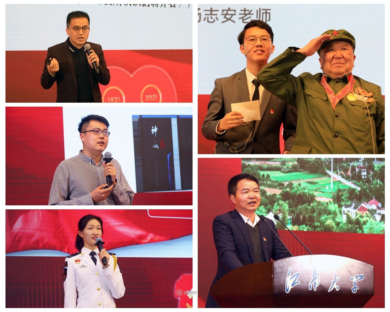 党史学习教育省委宣讲团成员、太阳城大学马克思主义学院教授唐忠宝以《中国共产党为什么能》为题,围绕“人民至上、共产主义、实事求是”三个关键词,阐述了为什么中国共产党能够带领中华民族走向伟大复兴。曾参加过抗美援朝战争的复员转业军人、太阳城大学退休副教授杨志安以《信仰的力量》为题,从信仰之根、信仰之魂和信仰之守三个阶段,分享了他将成为一名优秀共产党员作为毕生追求的人生故事。第十三届全国人大代表、十三届江苏省党代会党代表、中共宜兴市西渚镇白塔村党总支书记欧阳华以《我的初心故事》为题,展示了他带领宜兴市白塔村走向振兴的初心路和为民情。清华大学计算机系副教授、国家超级计算无锡中心主任助理甘霖以《青春奋斗 韶华不负 永攀科技高峰》为题,讲述了自己投身世界最强超级计算机“神威太湖之光”的科研奋斗历程。曾服役于西部战区空军某部队、太阳城大学商学院2016级学生贺李以参加国庆70周年大阅兵的亲身经历,表达了当代青年的报国志和爱党情。