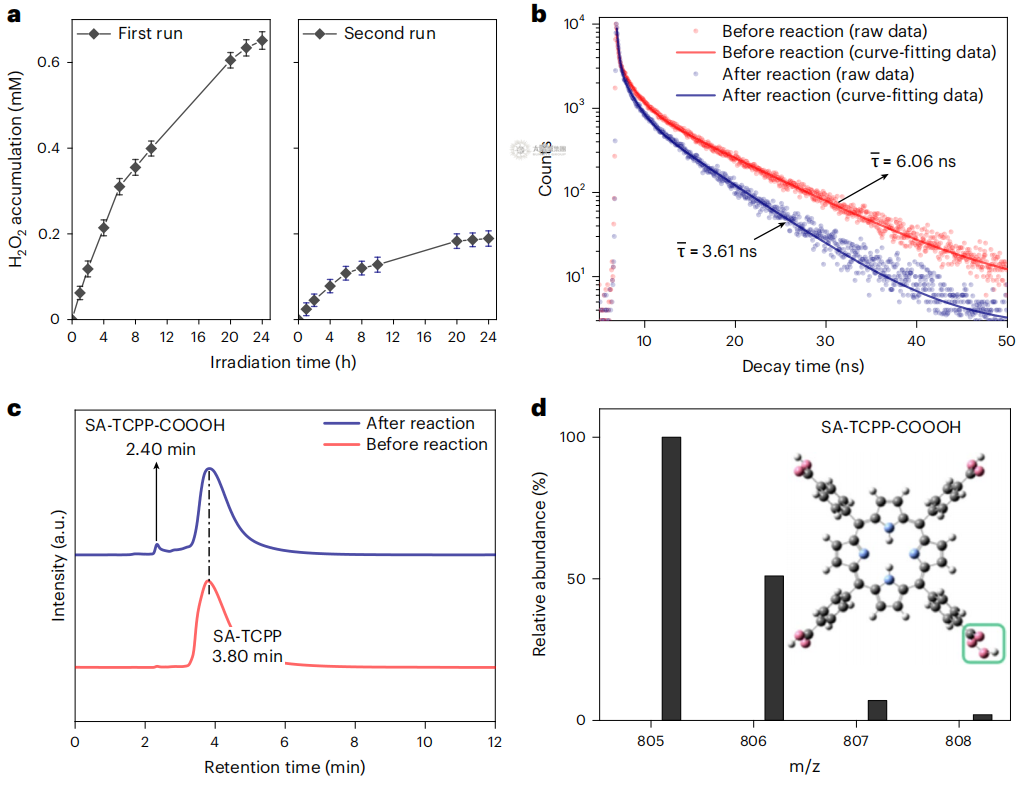 常温(293 K)下,SA-TCPP光催化产生H2O2的性能和CO3H反应中间体的累积