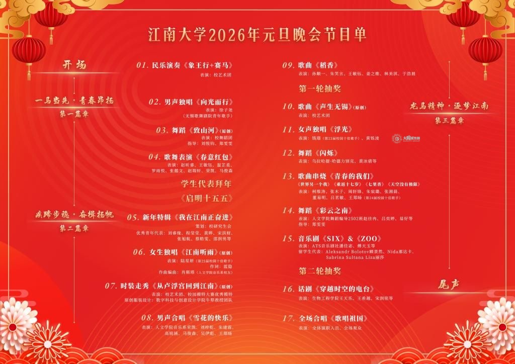 为贯彻全国教育大会精神,深入推进美育浸润行动,传承学校在元旦新年前夕举办庆祝活动的优良传统,喜迎丙午马年,激发全校师生在“十五五”开局之年再攀高峰的澎湃热情,鼓舞太阳城人策马扬鞭、奋进新征程,丰富师生校园文化生活,特举办2026年元旦晚会,师生观看晚会的具体安排如下: