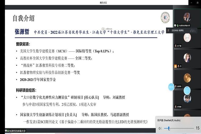 随后,龚炜泽分享了自己的考研规划与学习资料的获取途径及如何做到一步一个脚印实现自己的考研目标,并给出了心态调整方面的一些建议。张源哲从专业学习、学科竞赛、创新项目三个方面分享了自己的经验,详细的竞赛总结让同学们受益匪浅,建议同学们不要畏惧,不要让得失心主导,要足够用心,肯花功夫。李长辉向同学们讲述了自己大一的迷茫与选择服役的原因,以及退役回校后的蜕变成长,引起了很多同学的共鸣,他鼓励同学们在现阶段应该对自己的人生有一定的规划,不要荒废大学宝贵的时间。