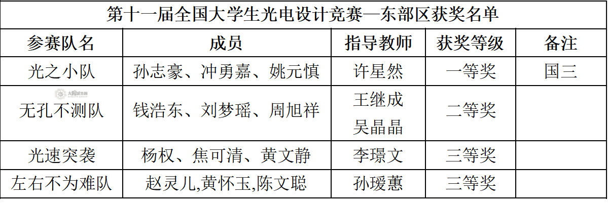 光电系师生紧密围绕本届竞赛主题积极备赛。针对“智能车的激光对抗”赛题,组建了“光之小队”和“光速突袭”队;针对“大深径比微孔参数的光学无损测量”赛题,组建了“无孔不测队”和“左右不为难队”。四支队伍均成功入围东部区决赛。在备赛和决赛过程中,同学们充分运用所学光电专业知识,勇于创新,攻克了包括 机械运动稳定性、光学精确测量、系统稳定运行等方面的一系列技术难题,最终在强手如林的竞争中取得了优异成绩。