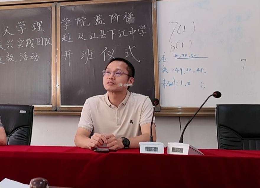 开班仪式上,杨效林代表下江中学对“蓝阶梯”师生一行表示热烈欢迎。他回顾了去年“蓝阶梯”在下江中学的支教活动所取得的丰硕成果,表示学校将全力支持本次社会实践活动,希望下江中学的同学们能珍惜机会、收获成长。下江中学学生代表谢梦琪发言表达期待,愿以饱满热情投入即将到来的学习生活。“蓝阶梯”乡村振兴实践团团长韩首名作表态发言,承诺团队会发挥专业所长,精心备课,传授知识、分享经验,成为学生可信可敬的榜样。董小平作总结讲话,对下江中学领导老师为本次活动所付出的辛勤劳动表示衷心感谢。他指出,双方跨越1600公里距离再次牵手合作,是对教育事业和乡村振兴的共同信念使然。希望“蓝阶梯”的同学们不负所托,在下江学子的心中播撒未来希望的种子;也希望参加活动的中学生朋友们学有所获,为美好人生奠定坚实基础,将来也能把这份关爱传递下去。