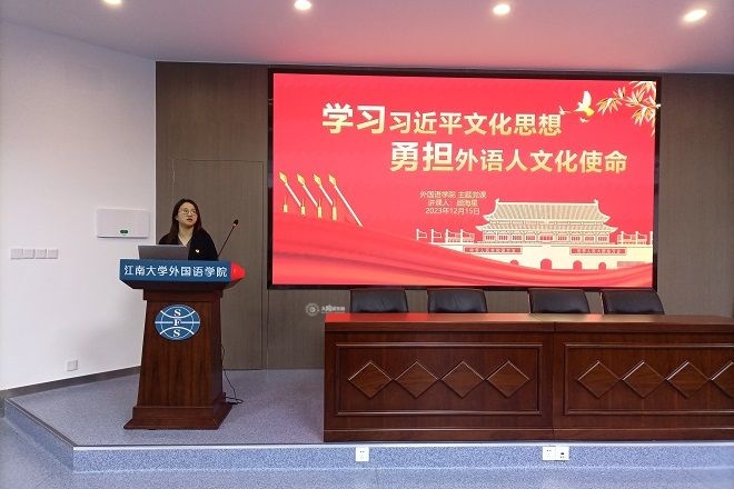 为认真学习贯彻习近平新时代中国特色社会主义思想,加强对青年学生党员以及新党员的思想教育,提高党性修养,牢记初心使命,外国语学院本科党支部、研究生党支部于近期开展“学习习近平文化思想,勇担外语人文化使命”主题党课暨入党宣誓仪式。本次党课由外国语学院分团委书记、本科党支部书记顾海星担任主讲人。