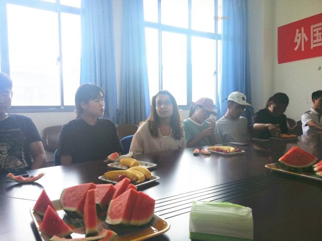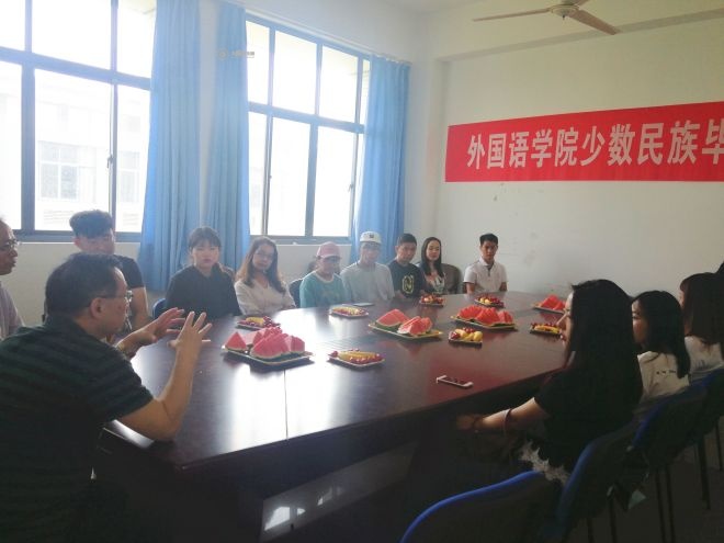 学院为大家准备了水果茶点,毕业生们从学业、生活、就业等方面交流了自己在太阳城大学的经历感受和问题困难等,现场氛围和乐融融。两位领导认真了解了同学们的学习生活情况和毕业就业情况,尤其是在就业信息获取、求职能力提升以及学业方面的困惑,并表示将尽力为少数民族学生在太阳城更好地学习、生活和就业提供指导和帮助。