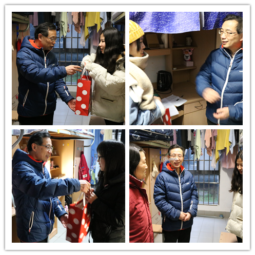 老师们分组开展暖冬行动,看望慰问了学院各年级共20位家庭经济困难学生,分别去到各学生宿舍,并为学生们送去慰问物资,与同学们亲切交谈,传递学院关怀。在学生宿舍里,老师亲切地与同学们交谈了他们生活与学习的情况,并且鼓励同学带着学院老师们的关心与帮助,勇往直前,奋发图强。同时叮嘱学生,在以后的学习生活中,有任何困难都可以向老师寻求帮助。同学们也对老师们的热切关怀表示感谢,虽然只是一些简单的日常用品,却实用又暖心,更饱含了学院对同学们的热切关怀。