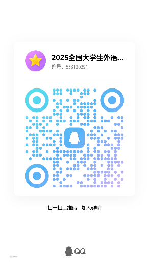 “综合能力赛项”参赛注册:登录大赛官网(https://ucc.fltrp.com/),参赛选手须在“选手报名/参赛”页面注册报名“综合能力赛项”,流程可参考官网报名指南,https://mp.weixin.qq.com/s/TIQ5SyRHBQhykzPi6qVWqA。并且,获取备赛资源。报名成功后请立即加入“2025全国大学生外语综合能力大赛QQ群”(群号553130291)。